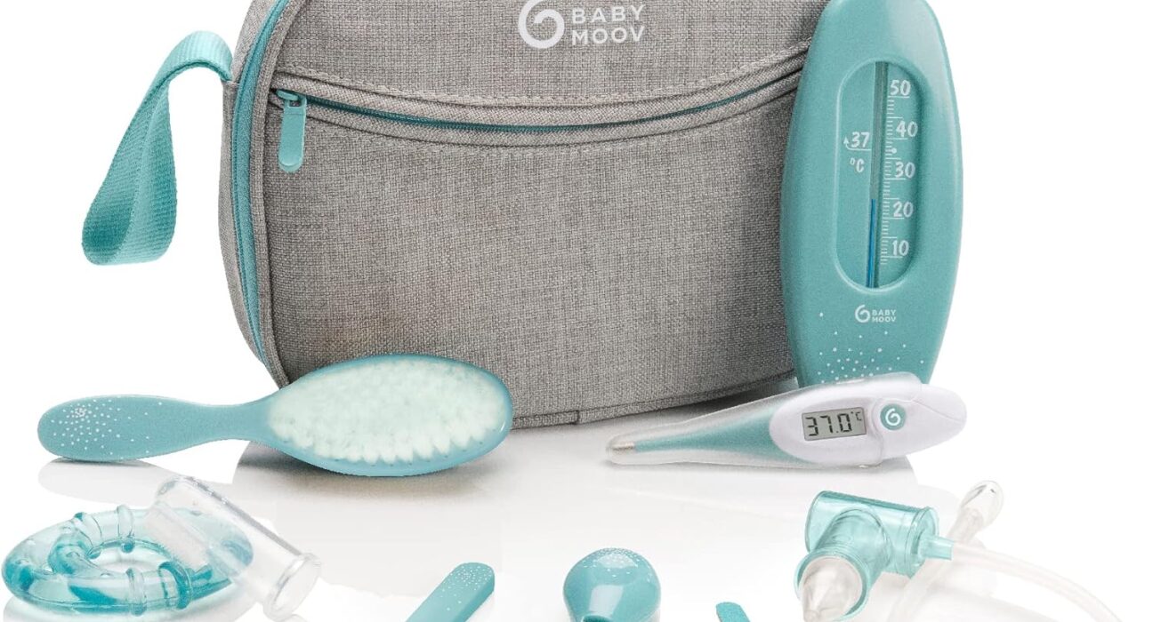 Ken je dat gevoel, als je met drie kinderen tegelijk moet vertrekken en je opeens de hele verzorgingsset kwijtraakt? Yup, been there last weekend toen we met Max en Sophie naar oma gingen. Toen kwam mijn redder in nood: de BabyMoov baby-toilettas – verzorging set voor baby’s 9 4-delig, met Digitaal koortsthermometer, neuszuiger, Blauw-Turquoise. Echt, zo’n fijne uitvinding voor drukke moeders zoals ik.