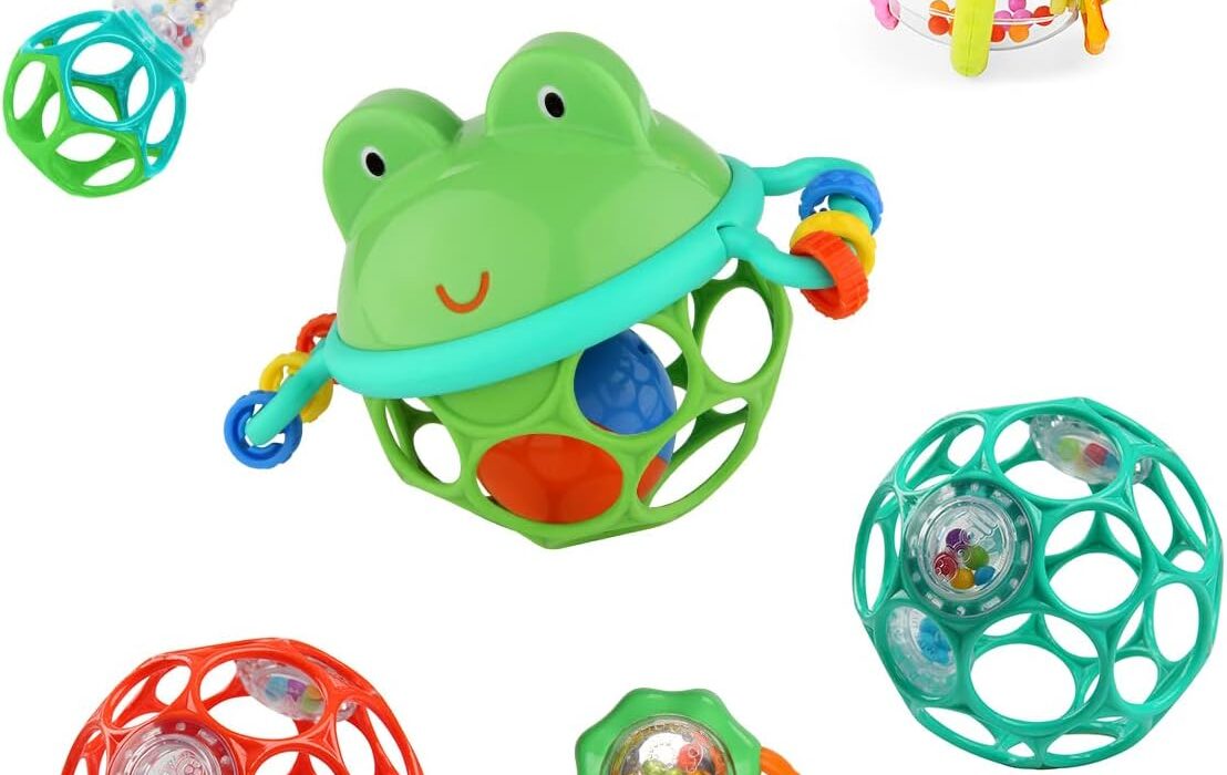 Een vrolijke, veilige en praktische rammelaarset die perfect is voor pasgeborenen en jonge baby’s, ideaal als cadeau voor babyshowers en kraambezoeken.