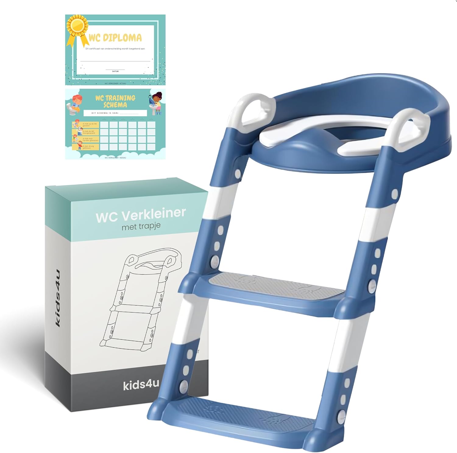 Kids4u Toiletbril voor Kinderen met Trap en Handgrepen, Opvouwbaar, WC...