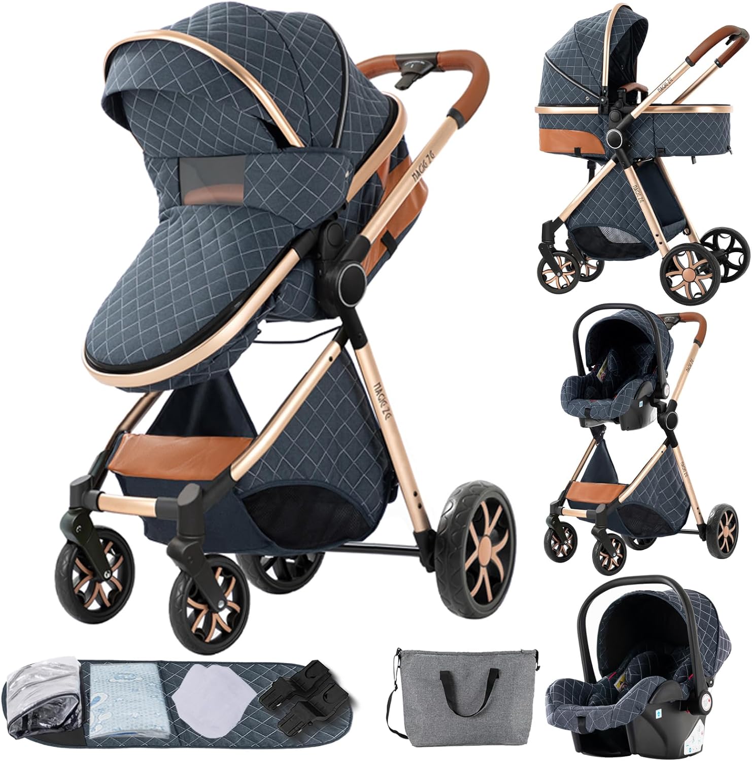 MoLi Kinderwagen 3-in-1, kinderwagen met omkeerbare dubbele schuifmodus, buggy met...