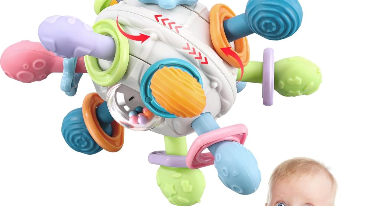 Een veilige en betrouwbare siliconen bijtring en motoriek speelgoed voor baby’s. Perfect voor baby’s van 3-18 maanden, ontworpen met Montessori principes en makkelijk schoon te maken.